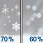Temperature: 34°F Wind Speed: 7 to 10 mph Wind Direction: S Forecast: Snow likely before 1pm, then sleet likely between 1pm and 2pm, then rain likely between 2pm and 3pm. Mostly cloudy. High near 34, with temperatures falling to around 32 in the afternoon. South wind 7 to 10 mph, with gusts as high as 20 mph. Chance of precipitation is 70%. New snow accumulation of less than half an inch possible. |