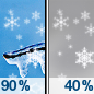 Temperature: 30°F Wind Speed: 6 mph Wind Direction: S Forecast: Snow. Cloudy, with a low around 30. South wind around 6 mph. Chance of precipitation is 100%. New snow accumulation of 1 to 2 inches possible. |