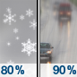 Temperature: 44°F Wind Speed: 1 to 5 mph Wind Direction: SE Forecast: Snow likely before 8am, then rain. Mostly cloudy, with a high near 44. Chance of precipitation is 90%. |
