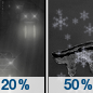 Temperature: 26°F Wind Speed: 3 mph Wind Direction: SW Forecast: Snow likely after 3am. Mostly cloudy, with a low around 26. Southwest wind around 3 mph. Chance of precipitation is 60%. New snow accumulation of less than half an inch possible. |