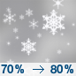 Temperature: 23°F Wind Speed: 10 to 15 mph Wind Direction: SW Forecast: Snow showers likely. Mostly cloudy, with a low around 23. Chance of precipitation is 60%. New snow accumulation of 1 to 3 inches possible. |