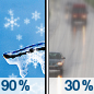 Temperature: 33°F Wind Speed: 7 to 12 mph Wind Direction: SW Forecast: A chance of snow. Mostly cloudy, with a high near 33. Southwest wind 7 to 12 mph. Chance of precipitation is 30%. |
