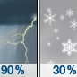 Temperature: 55°F Wind Speed: 12 to 16 mph Wind Direction: SW Forecast: Rain and a slight chance of thunderstorms before noon, then a chance of rain showers between 1pm and 4pm, then a slight chance of rain and snow showers between 4pm and 5pm. Mostly cloudy. High near 55, with temperatures falling to around 33 in the afternoon. Southwest wind 12 to 16 mph, with gusts as high as 38 mph. Chance of precipitation is 90%. New rainfall amounts between a half and three quarters of an inch possible. |
