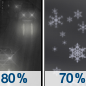 Temperature: 30°F Wind Speed: 2 to 9 mph Wind Direction: SSE Forecast: A slight chance of snow showers between 10pm and 11pm, then a chance of rain and snow showers between 11pm and 2am, then rain and snow showers. Mostly cloudy. Low around 30, with temperatures rising to around 37 overnight. South southeast wind 2 to 9 mph. Chance of precipitation is 80%. |