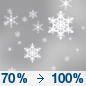 Temperature: 38°F Wind Speed: 8 to 12 mph Wind Direction: SW Forecast: A chance of snow. Mostly cloudy, with a high near 38. New snow accumulation of less than half an inch possible. |