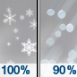 Temperature: 36°F Wind Speed: 8 mph Wind Direction: S Forecast: Snow before 1pm, then snow and a slight chance of sleet between 1pm and 3pm, then a chance of rain and snow between 3pm and 4pm, then a chance of rain showers. Cloudy, with a high near 36. South wind around 8 mph. Chance of precipitation is 100%. New snow accumulation of 3 to 5 inches possible. |