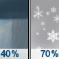 Temperature: 39°F Wind Speed: 5 to 8 mph Wind Direction: W Forecast: A slight chance of snow showers before 11am. Mostly sunny. High near 39, with temperatures falling to around 33 in the afternoon. West wind 5 to 8 mph. Chance of precipitation is 20%. |