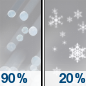Temperature: 33°F Wind Speed: 6 to 10 mph Wind Direction: E Forecast: A chance of snow and a slight chance of freezing rain between 7am and 1pm, then snow and freezing rain and a slight chance of sleet. Cloudy, with a high near 33. Chance of precipitation is 80%. |