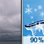 Temperature: 30°F Wind Speed: 3 mph Wind Direction: E Forecast: Snow and a slight chance of freezing rain between 1pm and 4pm, then snow and a slight chance of sleet and a slight chance of freezing rain. Cloudy, with a high near 30. East wind around 3 mph. Chance of precipitation is 90%. New snow accumulation of 2 to 4 inches possible. Little or no ice accumulation expected. |