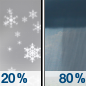 Temperature: 14°F Wind Speed: 5 to 15 mph Wind Direction: E Forecast: Rain and snow showers. Cloudy, with a low around 14. Chance of precipitation is 90%. New snow accumulation of 1 to 2 inches possible. |