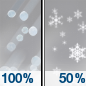 Temperature: 34°F Wind Speed: 2 to 6 mph Wind Direction: E Forecast: A chance of snow between 7am and 1pm, then freezing rain and rain and snow. Cloudy, with a high near 34. Chance of precipitation is 90%. |