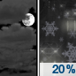 Temperature: 38°F Wind Speed: 7 mph Wind Direction: W Forecast: A slight chance of rain before 7pm. Mostly cloudy, with a low around 38. |