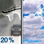 Temperature: 20°F Wind Speed: 5 to 10 mph Wind Direction: SW Forecast: A slight chance of snow showers. Mostly cloudy, with a low around 20. |