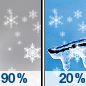 Temperature: 14°F Wind Speed: 6 mph Wind Direction: S Forecast: Snow likely after 4am. Mostly cloudy. Low around 14, with temperatures rising to around 23 overnight. South wind around 6 mph. Chance of precipitation is 70%. New snow accumulation of less than half an inch possible. |