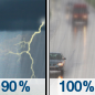 Temperature: 42°F Wind Speed: 5 to 15 mph Wind Direction: SE Forecast: Rain before midnight, then showers and thunderstorms. Cloudy. Low around 42, with temperatures rising to around 47 overnight. Southeast wind 5 to 15 mph, with gusts as high as 25 mph. Chance of precipitation is 100%. New rainfall amounts between a half and three quarters of an inch possible. |