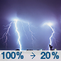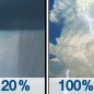 Temperature: 22°F Wind Speed: 14 to 20 mph Wind Direction: SW Forecast: Showers and thunderstorms before 1am. Mostly cloudy. Low around 22, with temperatures rising to around 29 overnight. Southwest wind 14 to 20 mph, with gusts as high as 30 mph. Chance of precipitation is 100%. New rainfall amounts between a half and three quarters of an inch possible. |