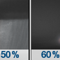 Temperature: 56°F Wind Speed: 0 to 5 mph Wind Direction: ESE Forecast: Rain showers likely. Cloudy, with a low around 56. |