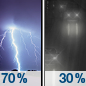 Temperature: 50°F Wind Speed: 5 mph Wind Direction: E Forecast: Showers and thunderstorms likely before 10pm, then a chance of rain between 10pm and 1am, then a chance of showers and thunderstorms between 1am and 4am, then a chance of rain. Cloudy, with a low around 50. East wind around 5 mph. Chance of precipitation is 60%. New rainfall amounts less than a tenth of an inch possible. |