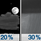 Temperature: 30°F Wind Speed: 5 to 8 mph Wind Direction: N Forecast: Partly cloudy, with a low around 30. |