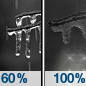Temperature: 28°F Wind Speed: 3 to 8 mph Wind Direction: S Forecast: Freezing rain likely between 10pm and midnight, then rain and a chance of freezing rain. Cloudy. Low around 28, with temperatures rising to around 39 overnight. South wind 3 to 8 mph. Chance of precipitation is 100%. Little or no ice accumulation expected. |
