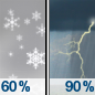 Temperature: 47°F Wind Speed: 6 to 9 mph Wind Direction: SSW Forecast: A chance of rain before 10am, then snow likely and patchy fog between 10am and 11am, then showers and thunderstorms likely between 11am and 1pm, then rain. Mostly cloudy. High near 47, with temperatures falling to around 45 in the afternoon. South southwest wind 6 to 9 mph. Chance of precipitation is 90%. New rainfall amounts less than a tenth of an inch possible. |