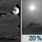 Temperature: 20°F Wind Speed: 5 mph Wind Direction: ESE Forecast: Mostly cloudy. Low around 20, with temperatures rising to around 25 overnight. East southeast wind around 5 mph. |