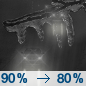 Temperature: 48°F Wind Speed: 3 mph Wind Direction: W Forecast: A slight chance of rain between 7am and 1pm. Mostly cloudy, with a high near 48. Chance of precipitation is 20%. |