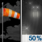 Temperature: 49°F Wind Speed: 13 to 18 mph Wind Direction: WSW Forecast: A slight chance of rain. Partly sunny, with a high near 49. |