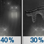 Temperature: 39°F Wind Speed: 3 mph Wind Direction: NE Forecast: A chance of rain. Cloudy, with a low around 39. Chance of precipitation is 40%. |