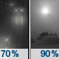 Temperature: 41°F Wind Speed: 15 to 20 mph Wind Direction: SSW Forecast: Rain likely after 3pm. Mostly cloudy. High near 41, with temperatures falling to around 38 in the afternoon. South southwest wind 15 to 20 mph. Chance of precipitation is 70%. New rainfall amounts less than a tenth of an inch possible. |