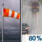 Temperature: 42°F Wind Speed: 9 to 35 mph Wind Direction: SW Forecast: Rain after noon. Cloudy. High near 42, with temperatures falling to around 40 in the afternoon. Southwest wind 9 to 35 mph, with gusts as high as 51 mph. Chance of precipitation is 80%. New rainfall amounts between a tenth and quarter of an inch possible. |
