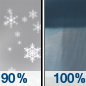 Forecast: Scattered snow showers before 7am, then rain showers. Cloudy, with a high near 47. Chance of precipitation is 100%.