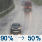 Temperature: 45°F Wind Speed: 12 to 23 mph Wind Direction: S Forecast: Rain after 7pm. Mostly cloudy, with a low around 45. Chance of precipitation is 90%. |