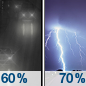 Temperature: 38°F Wind Speed: 6 mph Wind Direction: S Forecast: Rain likely between 7pm and 1am, then rain likely and a slight chance of thunderstorms. Mostly cloudy, with a low around 38. Chance of precipitation is 70%. |