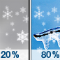 Forecast: Rain. Mostly cloudy, with a low around 27. Chance of precipitation is 80%.