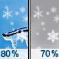 Temperature: 14°F Wind Speed: 3 mph Wind Direction: NE Forecast: Snow likely after 7pm. Cloudy, with a low around 14. Chance of precipitation is 70%. New snow accumulation of 2 to 4 inches possible. |