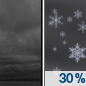 Temperature: 34°F Wind Speed: 5 to 10 mph Wind Direction: SW Forecast: A chance of snow between 8am and 1pm, then a chance of rain and snow. Partly sunny, with a high near 34. Chance of precipitation is 40%. |