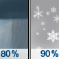 Temperature: 29°F Wind Speed: 3 to 9 mph Wind Direction: E Forecast: A chance of snow between 7am and 1pm, then snow and a slight chance of freezing rain. Cloudy, with a high near 29. Chance of precipitation is 80%. |