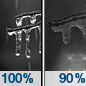 Temperature: 26°F Wind Speed: 2 to 6 mph Wind Direction: S Forecast: Freezing rain between 8pm and midnight, then freezing rain and rain between midnight and 1am, then rain and a chance of freezing rain. Cloudy. Low around 26, with temperatures rising to around 37 overnight. South wind 2 to 6 mph. Chance of precipitation is 100%. New ice accumulation of less than half an inch possible. |