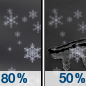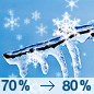 Temperature: 15°F Wind Speed: 5 mph Wind Direction: NE Forecast: Snow likely. Cloudy, with a low around 15. Chance of precipitation is 70%. |