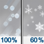 Temperature: 29°F Wind Speed: 0 to 5 mph Wind Direction: SE Forecast: Snow likely after 1am. Mostly cloudy, with a low around 29. Southeast wind 0 to 5 mph. Chance of precipitation is 70%. New snow accumulation of less than half an inch possible. |
