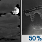Temperature: 15°F Wind Speed: 8 to 12 mph Wind Direction: S Forecast: A chance of snow. Mostly cloudy, with a low around 15. Chance of precipitation is 30%. |