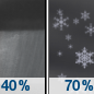 Temperature: 38°F Wind Speed: 9 to 13 mph Wind Direction: W Forecast: Rain and snow showers likely before 7am, then a chance of rain and snow showers. Cloudy, with a high near 38. Chance of precipitation is 70%. |