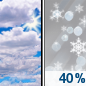 Temperature: 30°F Wind Speed: 2 mph Wind Direction: SW Forecast: A chance of sleet and a chance of freezing rain after 1pm. Mostly cloudy, with a high near 30. Chance of precipitation is 40%. |