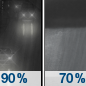 Temperature: 48°F Wind Speed: 0 to 5 mph Wind Direction: W Forecast: A chance of rain showers. Mostly cloudy, with a low around 48. Chance of precipitation is 30%. |