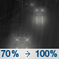 Temperature: 40°F Wind Speed: 6 to 14 mph Wind Direction: S Forecast: Rain after 7pm. Cloudy, with a low around 40. Chance of precipitation is 100%. |