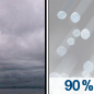 Temperature: 36°F Wind Speed: 6 to 12 mph Wind Direction: S Forecast: Rain. Cloudy, with a low around 36. Chance of precipitation is 80%. |