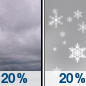 Temperature: 37°F Wind Speed: 5 to 9 mph Wind Direction: S Forecast: A slight chance of snow after 1pm. Cloudy, with a high near 37. South wind 5 to 9 mph. |