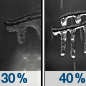 Temperature: 30°F Wind Speed: 5 mph Wind Direction: NE Forecast: A chance of snow between 7am and 1pm, then snow and a slight chance of freezing rain. Cloudy, with a high near 30. Chance of precipitation is 80%. |
