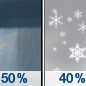 Temperature: 13°F Wind Speed: 7 mph Wind Direction: E Forecast: A chance of snow showers after 11pm. Mostly cloudy, with a low around 13. East wind around 7 mph. Chance of precipitation is 50%. New snow accumulation of less than half an inch possible. |
